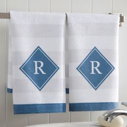 Bella Guest Towel in Champagne with Metallic Olive Imprint. Custom Printed Premium Bella Guest Towels. Rating: 5. (1). Majestic Initial monogrammed guest .Innkeepers/homeowners: your custom crests, logos, initials can be monogrammed on any InnStyle robe, towel, sheet, bedding, bath, table linen .Stack of white towels with monogram of letter S surrounded by a wreath. What is proper monogram etiquette exactly? Which initial goes first?.Personalize your Turkish Towels and Turkish Bathrobes and make a great gift. Let's monogram your address and initials to your towel and bathrobe.Williams Sonoma's monogram shop features great luxury gifts to personalize. Find personalized luxury gifts including decor and home accessories. Be the first to know! Tap here and sign up for emails. Minimize Bath Towels & Mats..These guest towels are of good quality and rich looking. I bought the pink with the gold embossed one initial. They look great in my bathroom in a gold holder on .Expect only the best at The Initial Design. Each of our premium velour golf towels feature a clean edge and a metal eyelet in the corner with a hook, which makes .Monogrammed Towels for College Students, Personalized Bath Towels, Please note that we always ask for initials in the “first name, middle name, last name” .Barware: Traditionally the barware has the man of the house's monogram or single last initial. Bath Towels: First, last, middle for the user..Find the best prices on monogrammed dish towels at Shop Better Homes Christmas Kitchen Towels Monogram. Monogram Initial Laurel Wreath Tea.